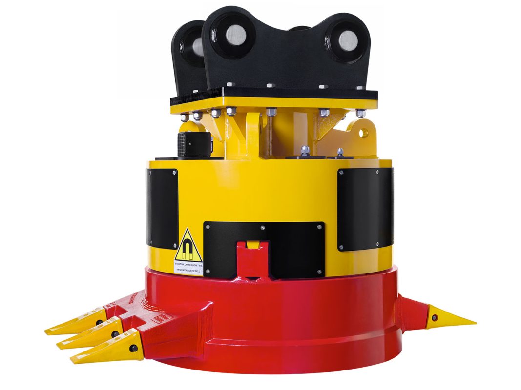Il s’agit d’un particulier électroaimant hydraulique conçu pour être installé sur camions grue ou petits chargeurs, grâce à son faible poids et au débit d’huile minimal demandé par la machine opératrice.